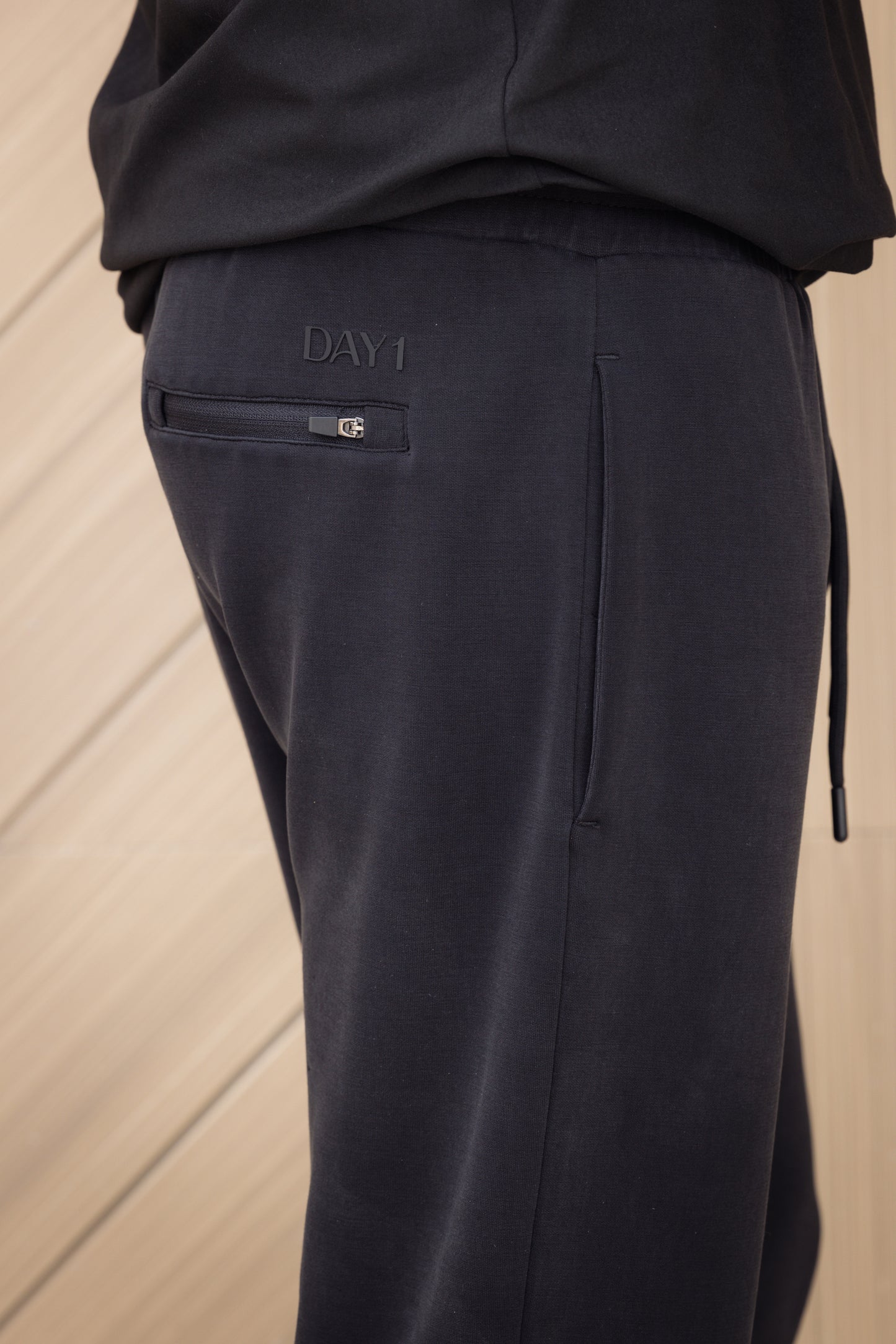 Features: On-seam side pockets, secure back zip pocket, elastic waistband with drawcord, faux J-stitch detail, washed modal blend for a soft luxe finish
